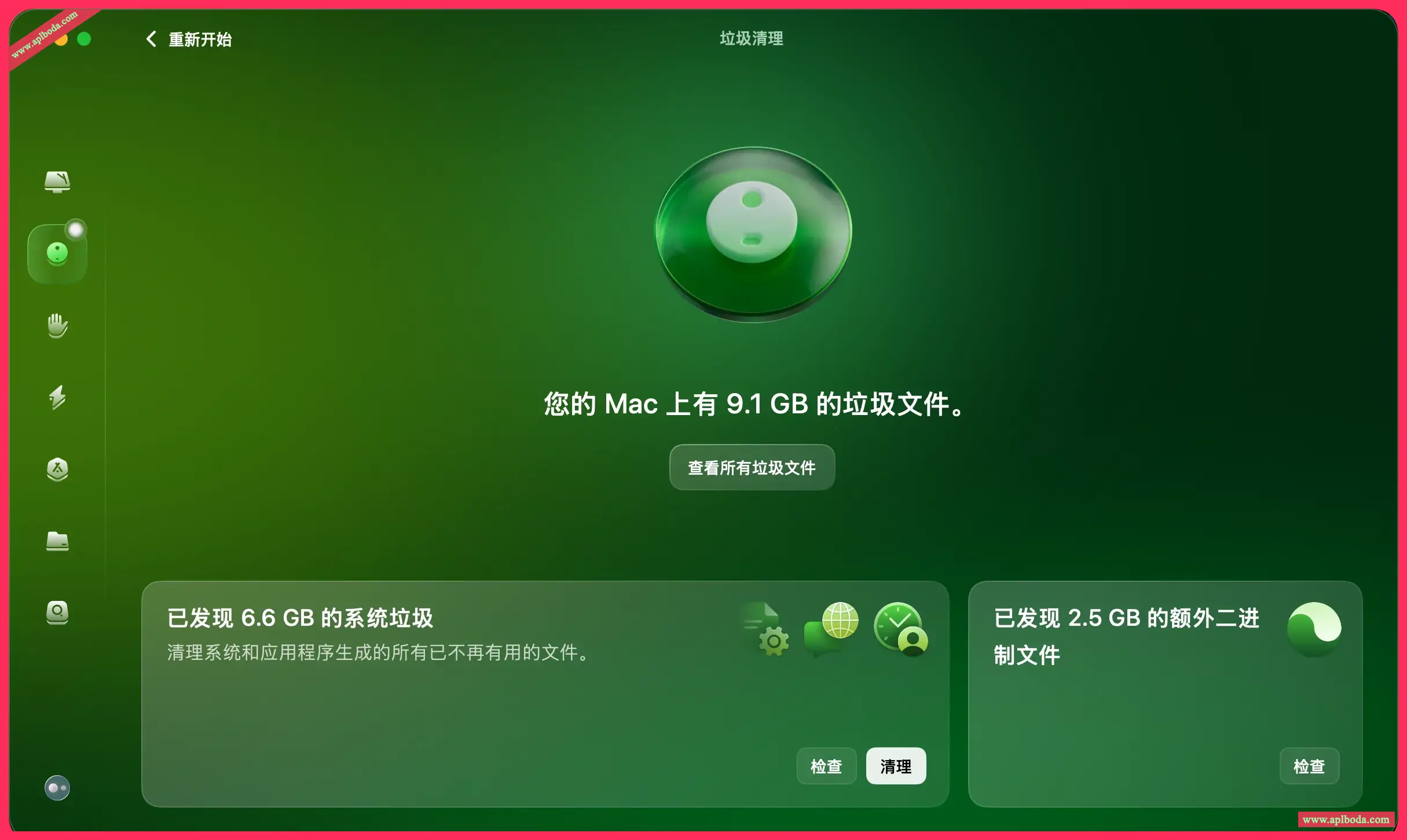 CleanMyMac X for Mac中文破解版只需两个简单步骤就可以把系统里那些乱七八糟的无用文件统统清理掉,节省宝贵的磁盘空间。cleanmymac x个人认为X代表界面上的最大升级,功能方面有更多增加,与最新macOS系统更加兼容,流畅地与系统性能更加结合,静默清理、记录更新、清洁缓存、快速和安全删除、卸载应用程序和清空回收站等重要功能。