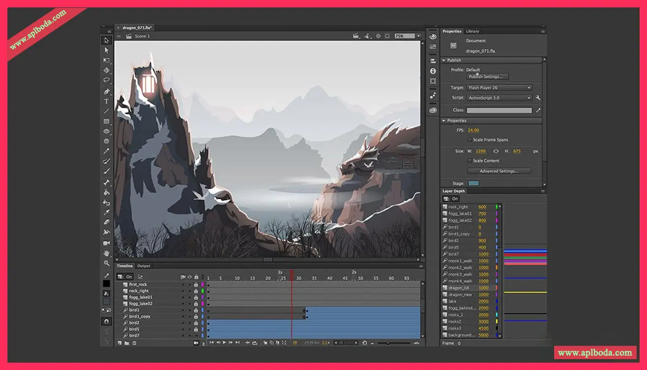 Adobe Animate 2024for Mac可以将各种内容制成动画。设计适合游戏、电视节目和 Web 的交互式动画。让卡通和横幅广告栩栩如生。创作动画涂鸦和头像。并向电子学习内容和信息图中添加动作。借助 Animate,您可以以几乎任何格式将动画快速发布到多个平台并传送到观看者的任何屏幕上。