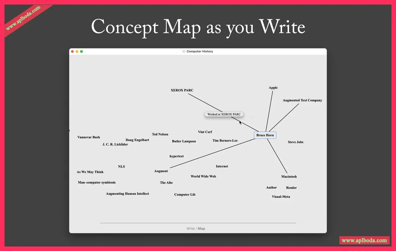 •动态视图:自由思考,不受传统文本列的限制。思维导图,概念图和记下的想法,就在Author内部。