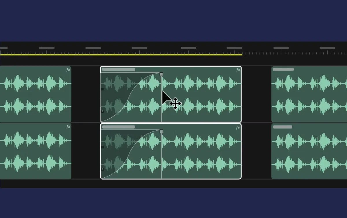 - 为时间轴对齐片段应用交叉淡化:在时间线精准对齐的音频片段间创建流畅转场,同时优化视频转场效果,全面提升成片质感。