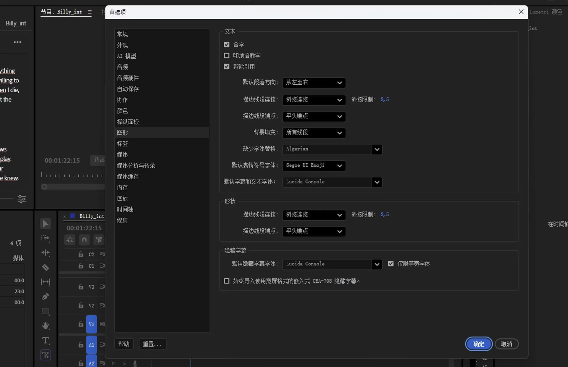 通过首选项 > 图形中的新设置,可预设文本、字幕和隐藏字幕的默认字体,并确保正确导入宽屏 CEA-708 字幕格式。