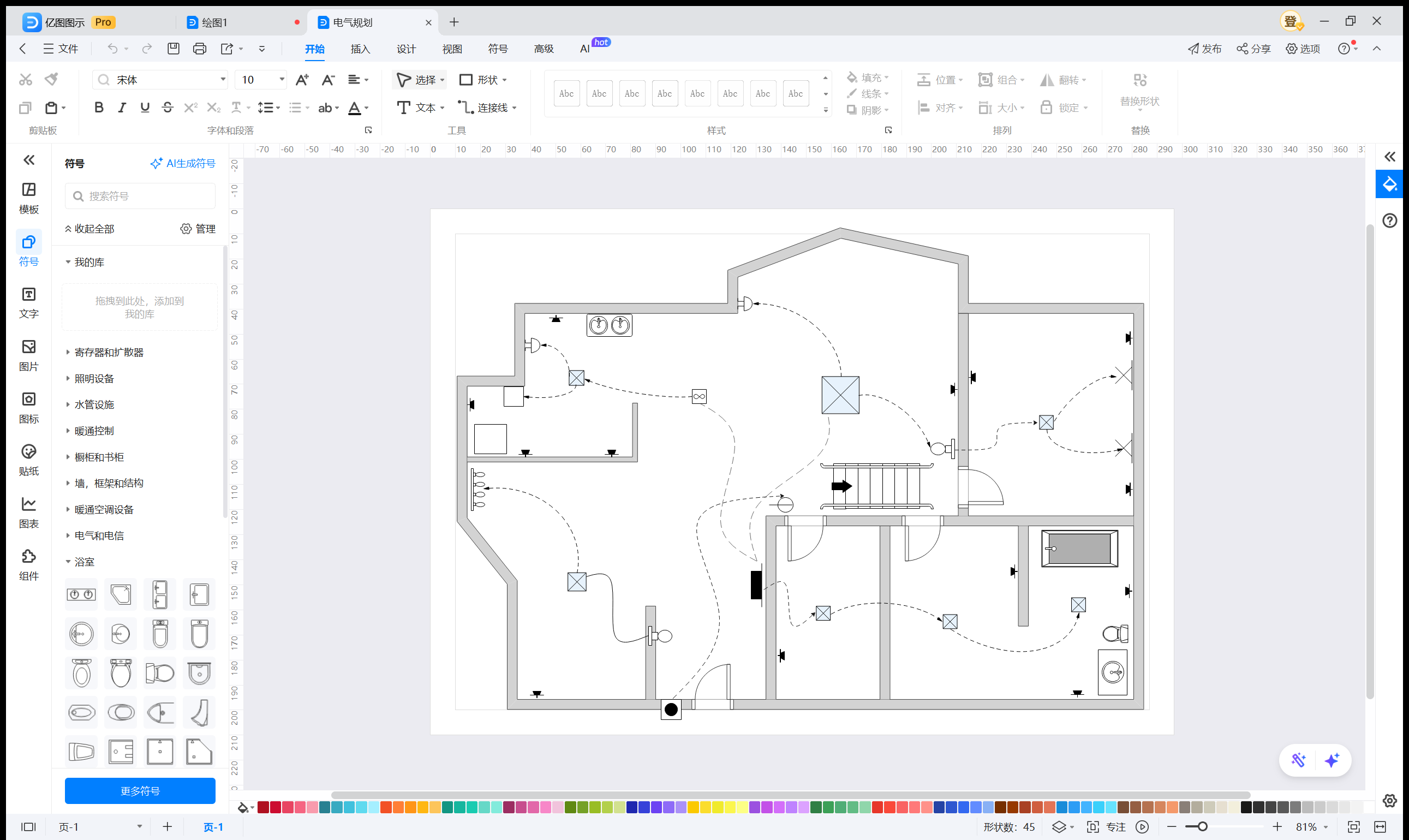 ⚫符号库:默认情况下,当您选择要在亿图图示中绘制的图表类型时,符号库将显示相关的形状和符号。