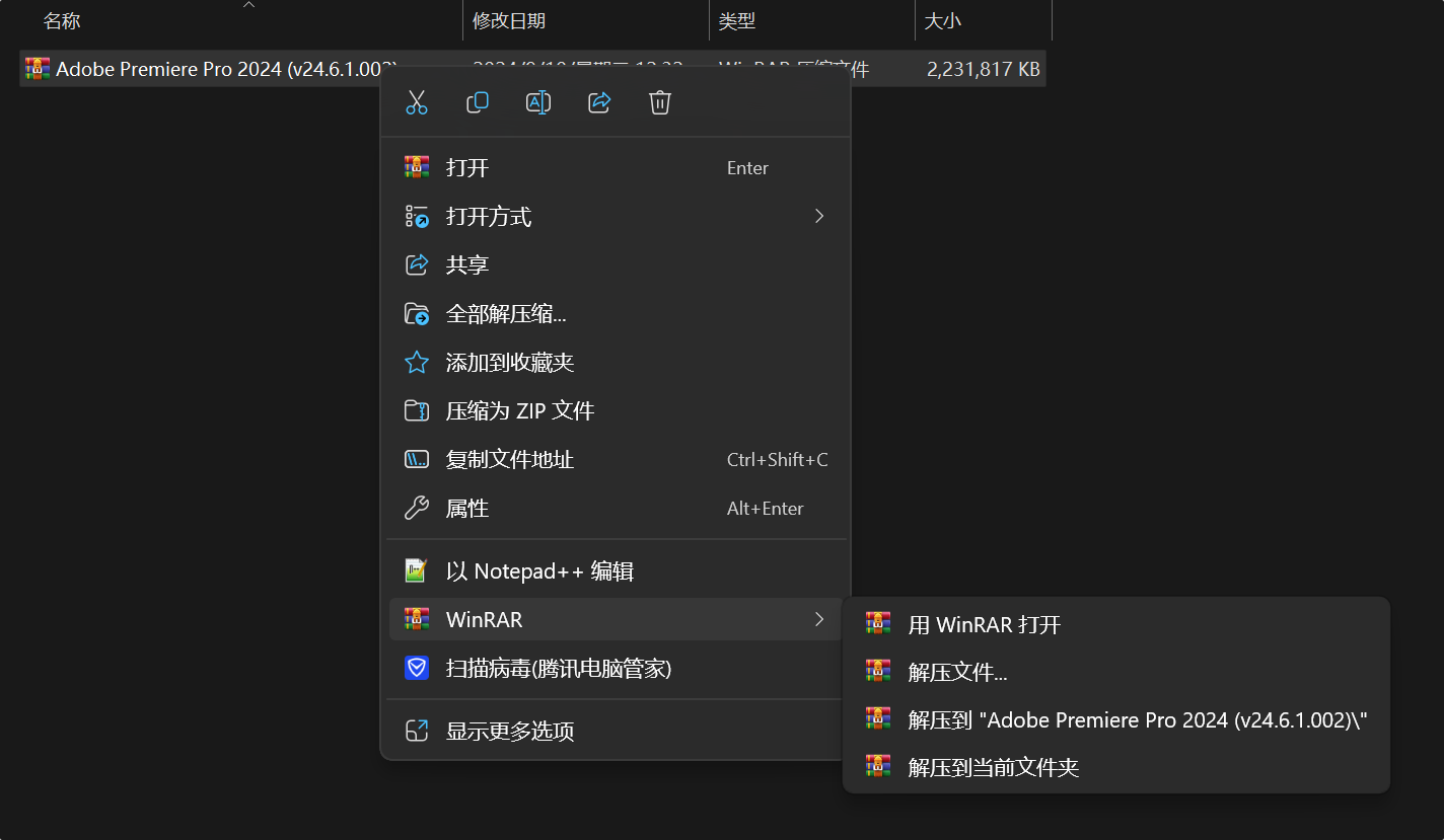 1、右键解压到当前文件夹(如果下载完成,不是压缩图标显示,显示白色或者浏览器图样,说明你电脑没有解压软件,自行安装解压软件)