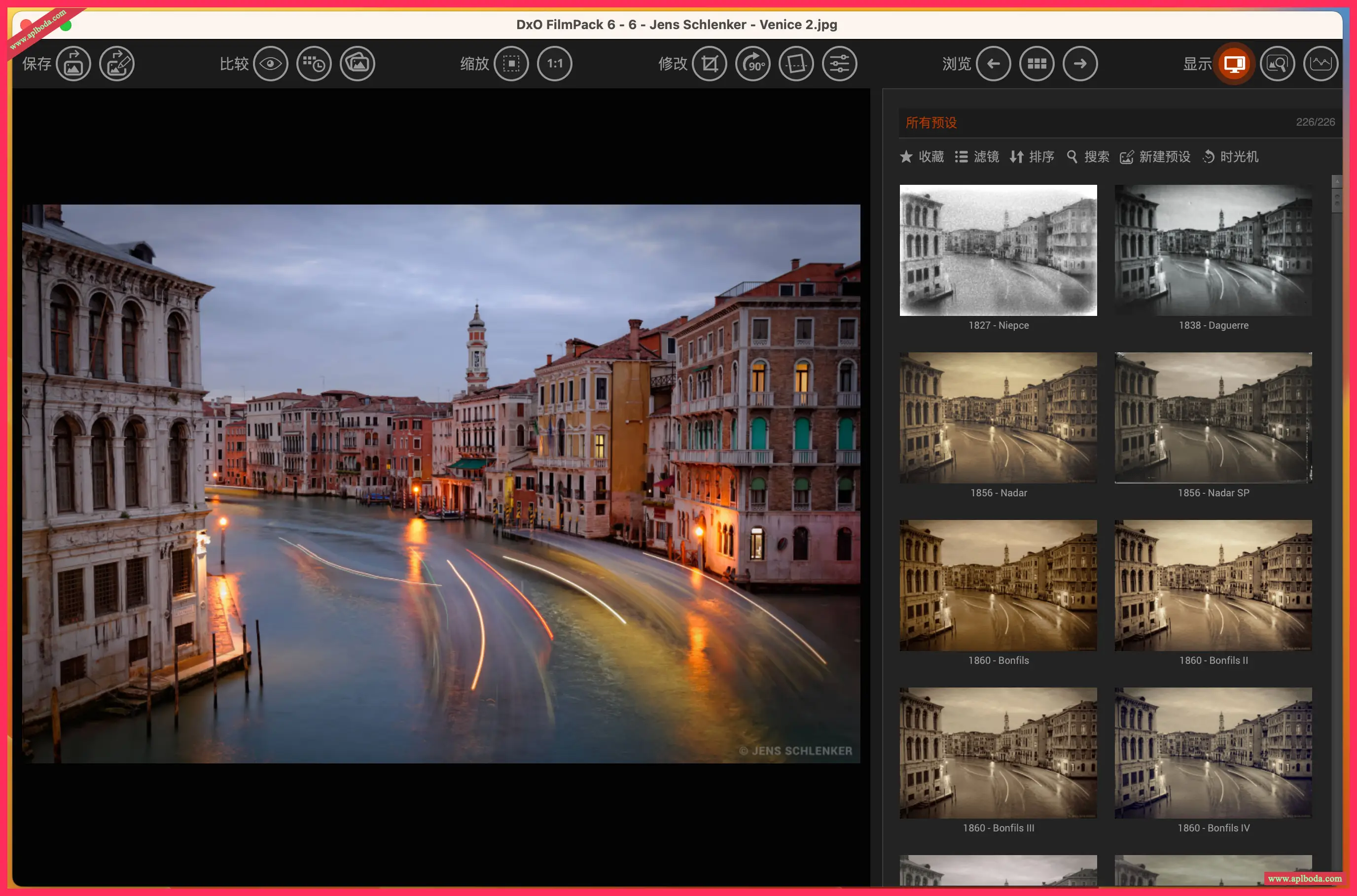 这个程序 DxO FilmPack 为您提供了许多原创的创意效果图:多达 39 种彩色和黑白设计师预设可供选择。复古效果、老照片、不可思议的色调:为您的照片赋予独特的风格!