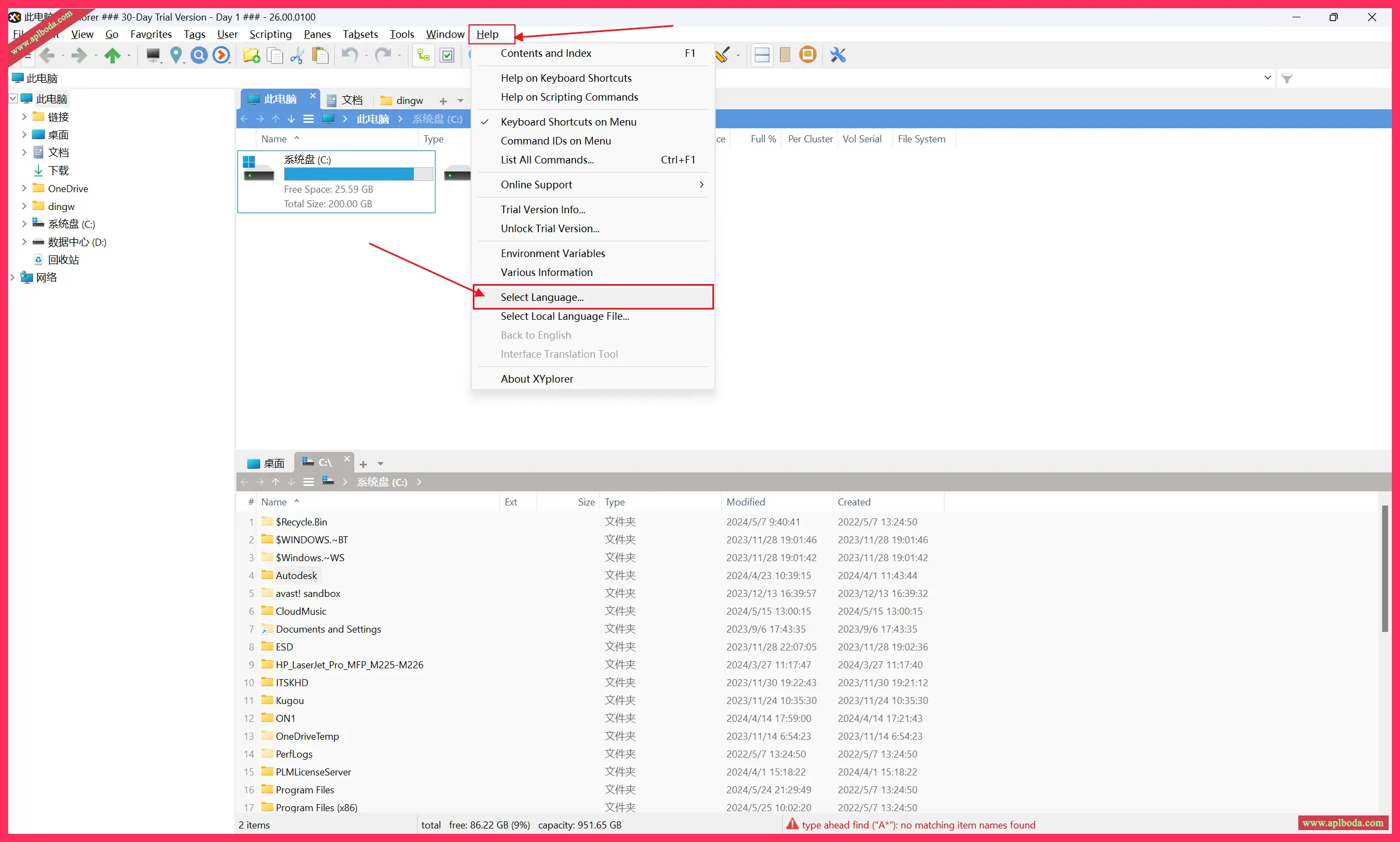 点击help>>select language,如图7.选择简体中文,如图8.汉化完成后,开始安装软件9.点击帮助>>解锁使用版本,如图