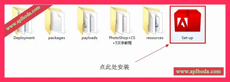 第一步:(解压我们下载好的ps软件包)点SETUP安装