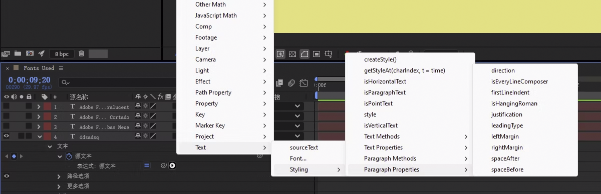 Zusätzlich zur Verwendung von Textausdrücken zum Festlegen der gesamtenTextNeben den Stileigenschaften für Ebenen können Sie auch Stileigenschaften für einzelne Zeichen in einer Ebene festlegen. Der Vorteil von zeichenspezifischen Steuerelementen besteht darin, dass sie den Text automatisch neu formatieren, z. B. wenn Buchstaben skaliert, hochgestellt oder verschiedene Schriftarten verwendet werden, genau wie beiCharakterDie Teilstring-Stileinstellungen im Bedienfeld sind dieselben.