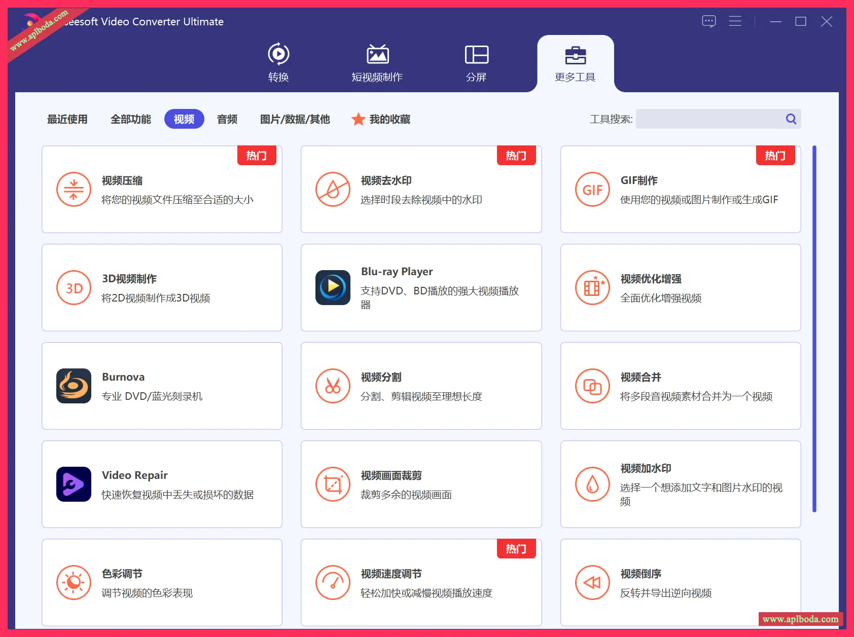Aiseesoft Video Converter Ultimate中文名为万能视频转换器,它是一款功能强大且优质的视频转换软件。该软件拥有剪辑、合并视频文件、调节视频的亮度、对比度、饱和度等强大功能,可以辅助你轻松解决所有问题。 Aiseesoft视频转换器终极完整版Windows独立离线安装程序。这是一个强大的转换软件,帮助您将自制的DVD和视频转换为2D/3D/HD视频文件,具有出色的视频编辑功能。它支持iPhone/iPad/iPod和最流行的便携式设备。