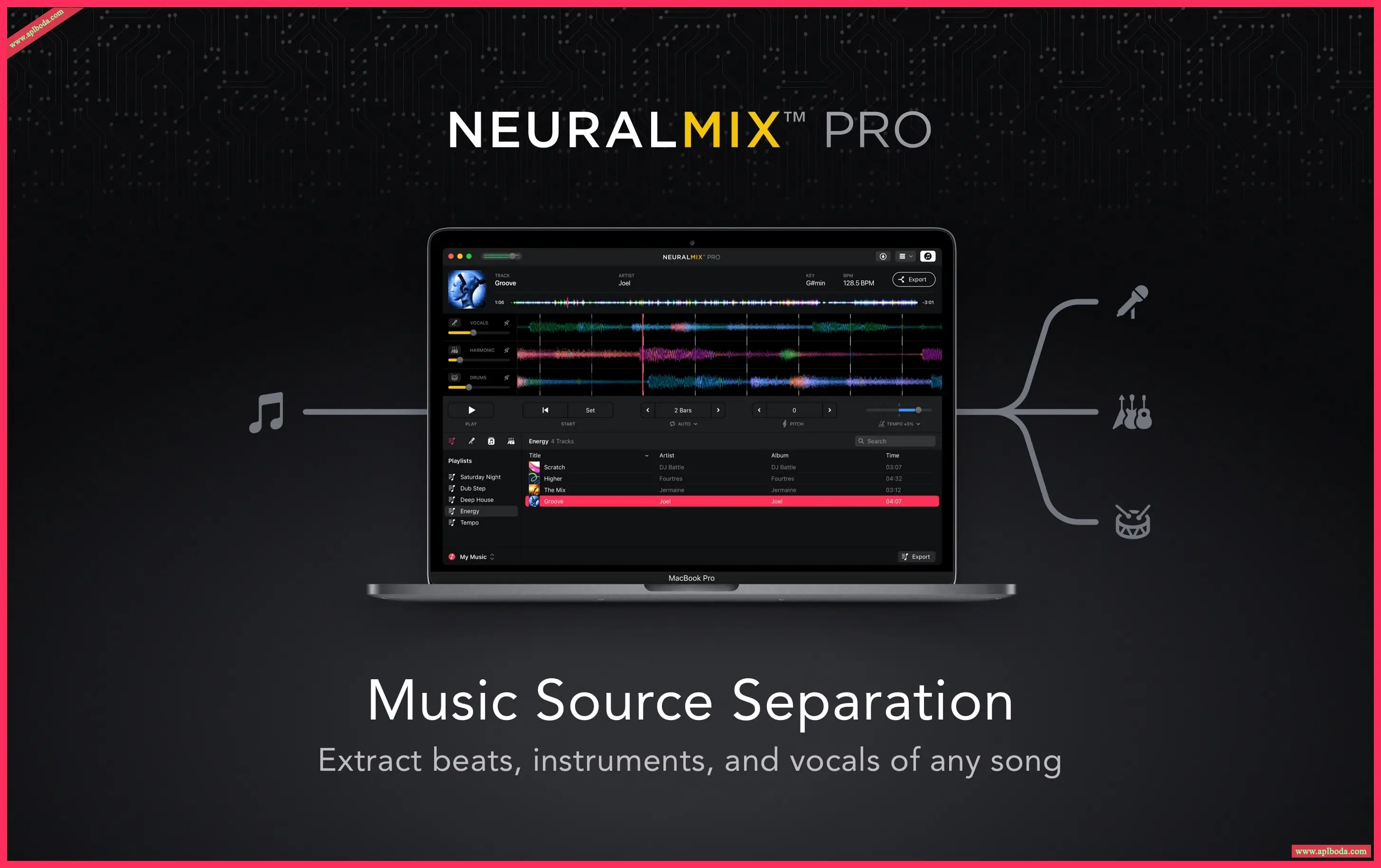 Neural Mix pro是应用在Mac上的音源分享器,可以帮助您提取任何歌曲的节拍,乐器和人声部分。这是一款由AI驱动的音乐播放器,是制作人,DJ和音乐家的编辑器。由多个苹果设计奖得主Algoriddim创建的Neural Mix™Pro提供了直观的界面,可以隔离任何歌曲的节拍,乐器和人声。本软件测试环境14.1系统!