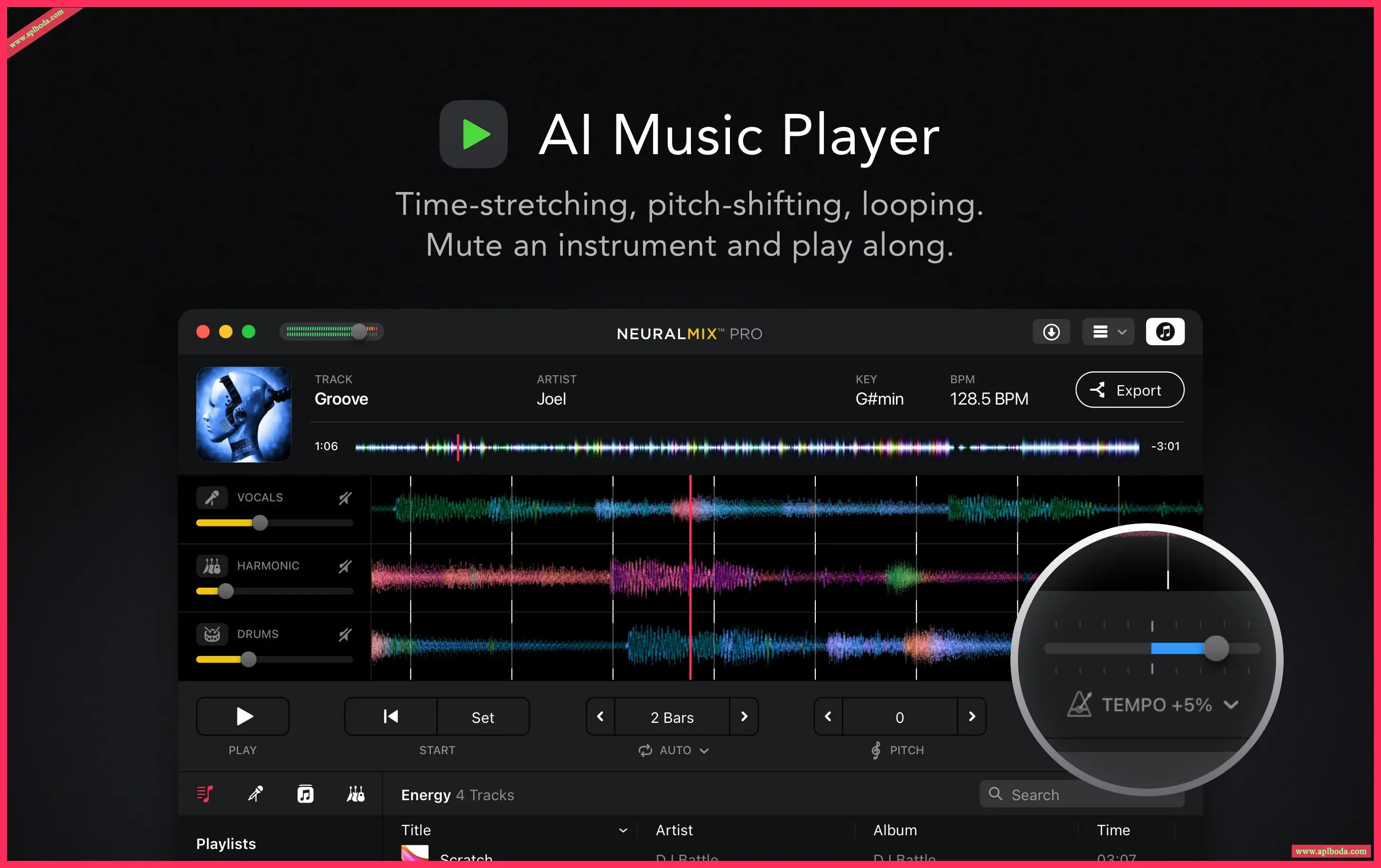 -高质量的拉伸:在不影响音高的情况下改变歌曲的速度(最高+ -75%)