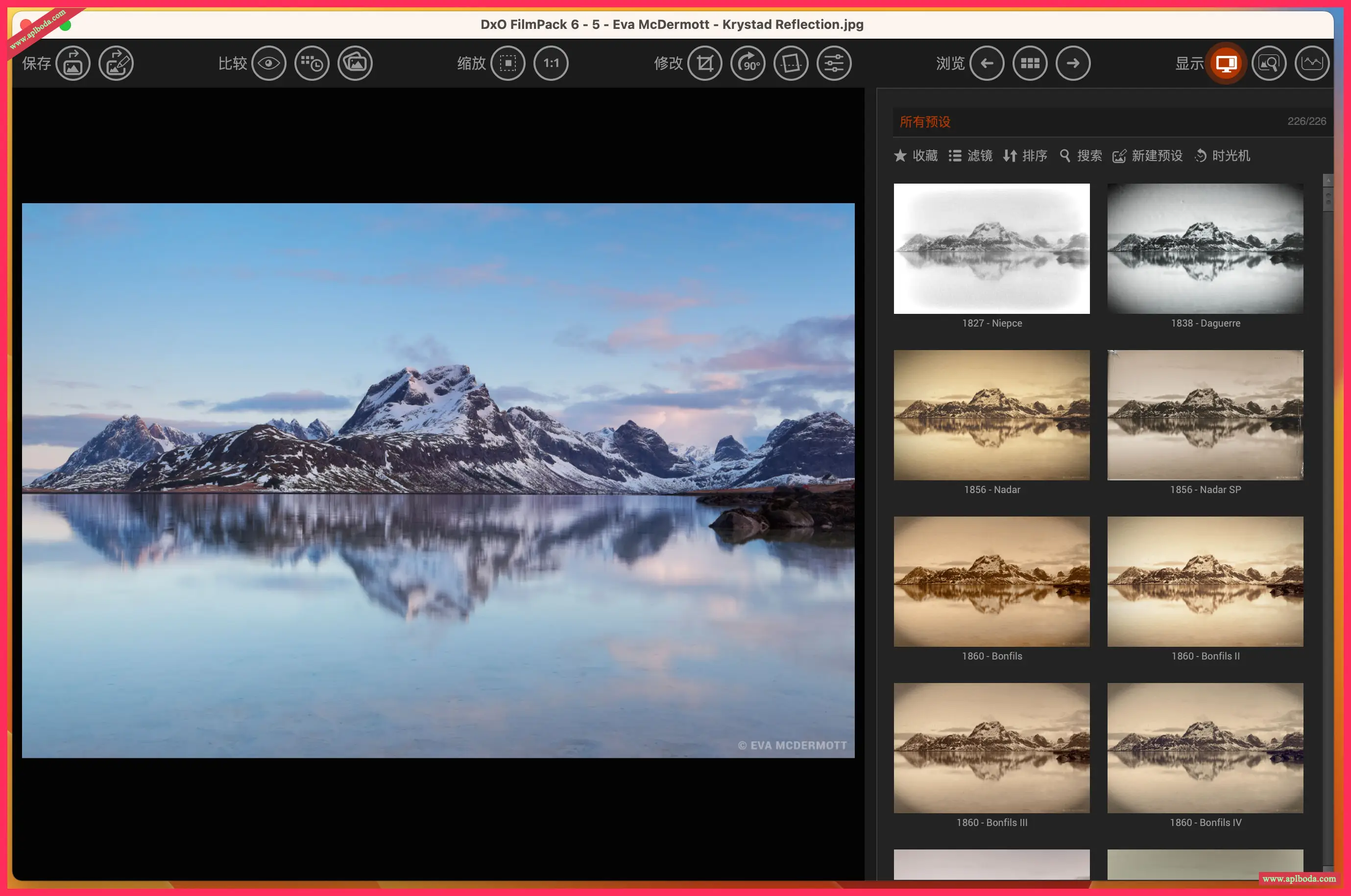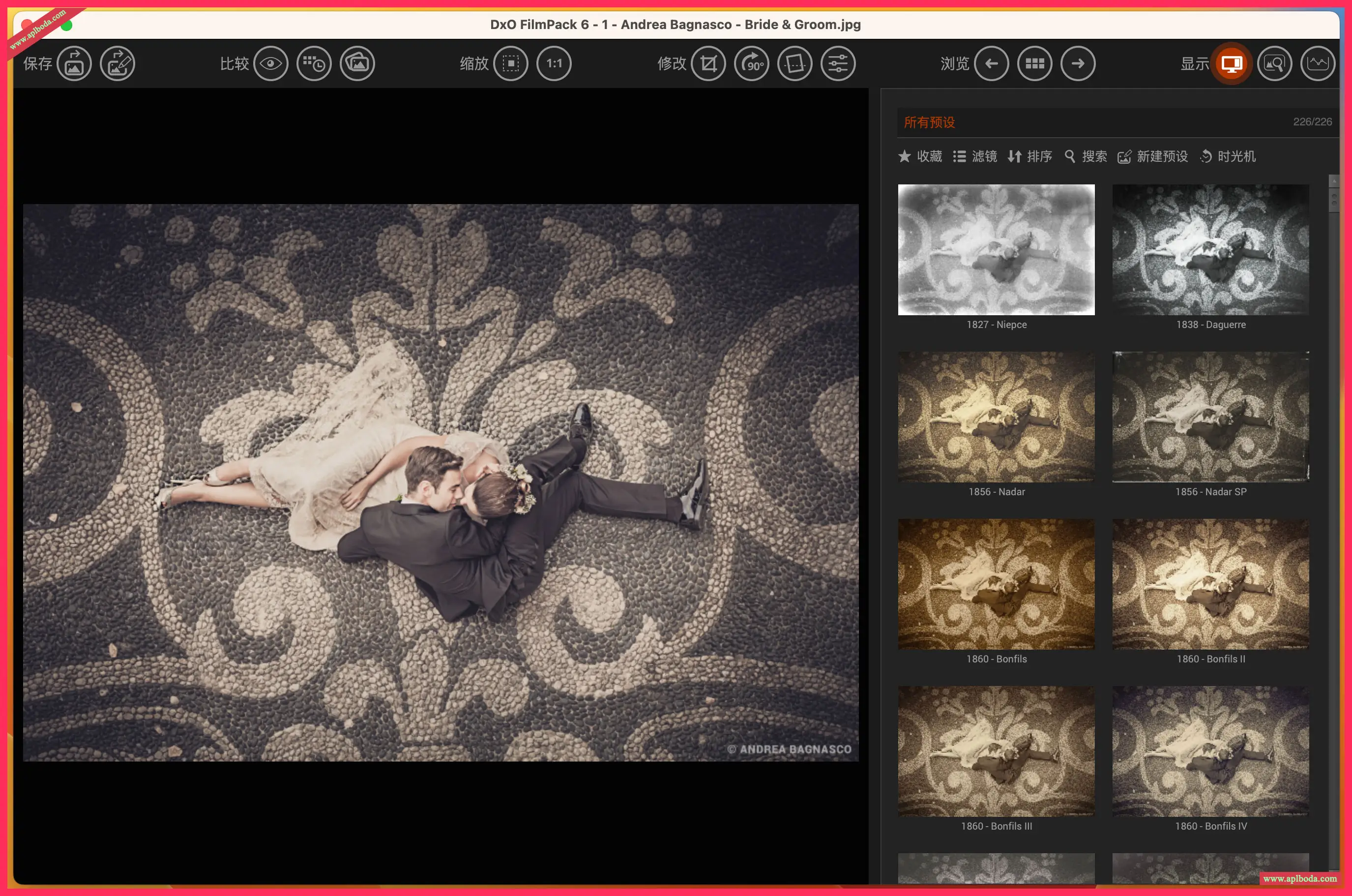 DxO FilmPack 6 for Mac is an easy-to-use Photoshop and DxO Optics Pro plug-in and standalone tool that gives your digital images the styles of the most famous traditional films: the colors and grains of more than 20 film types, including Kodachrome, Tri-X, Velvia, have been analyzed and reproduced, so you can apply them to all your images with just one click.