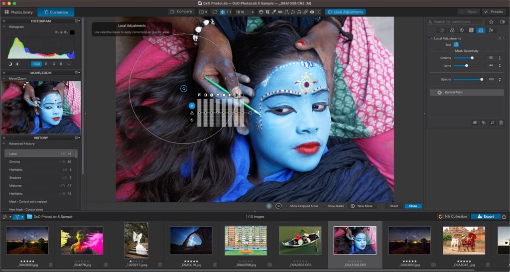 Edit your images with incredible precision using U Point™. These tools feature adjustable sensitivity levels and a comprehensive range of local adjustment options, including manual and automatic brushes and graduated filters.