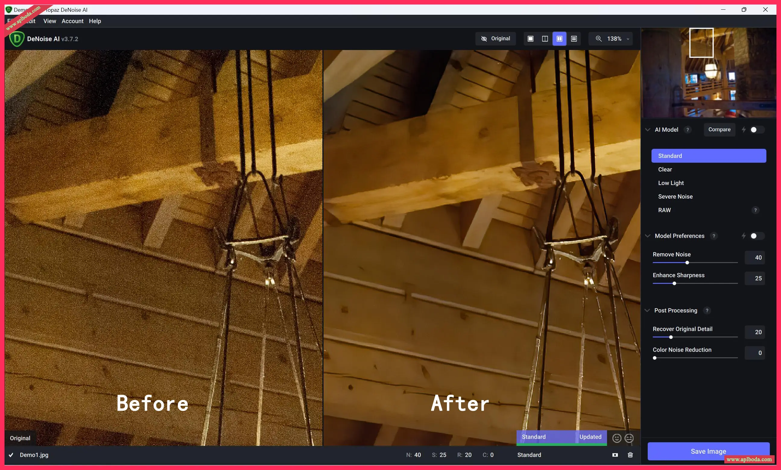 降噪人工智能提供了绝对最好的质量,目前可在任何地方,你需要在你的结果像素级完美。现有的降噪工具,如Lightroom,给你一个选择:保留一些噪音或删除一些细节。降噪人工智能的技术让你两全其美:消除噪音,同时加强细节。
