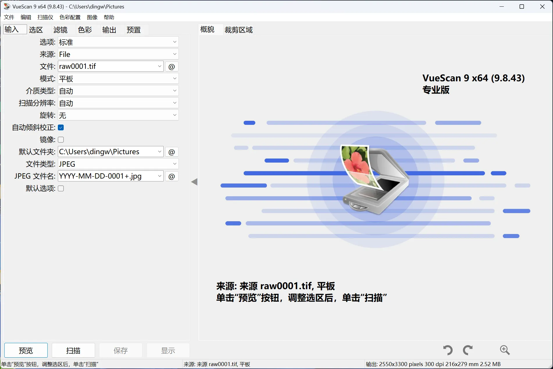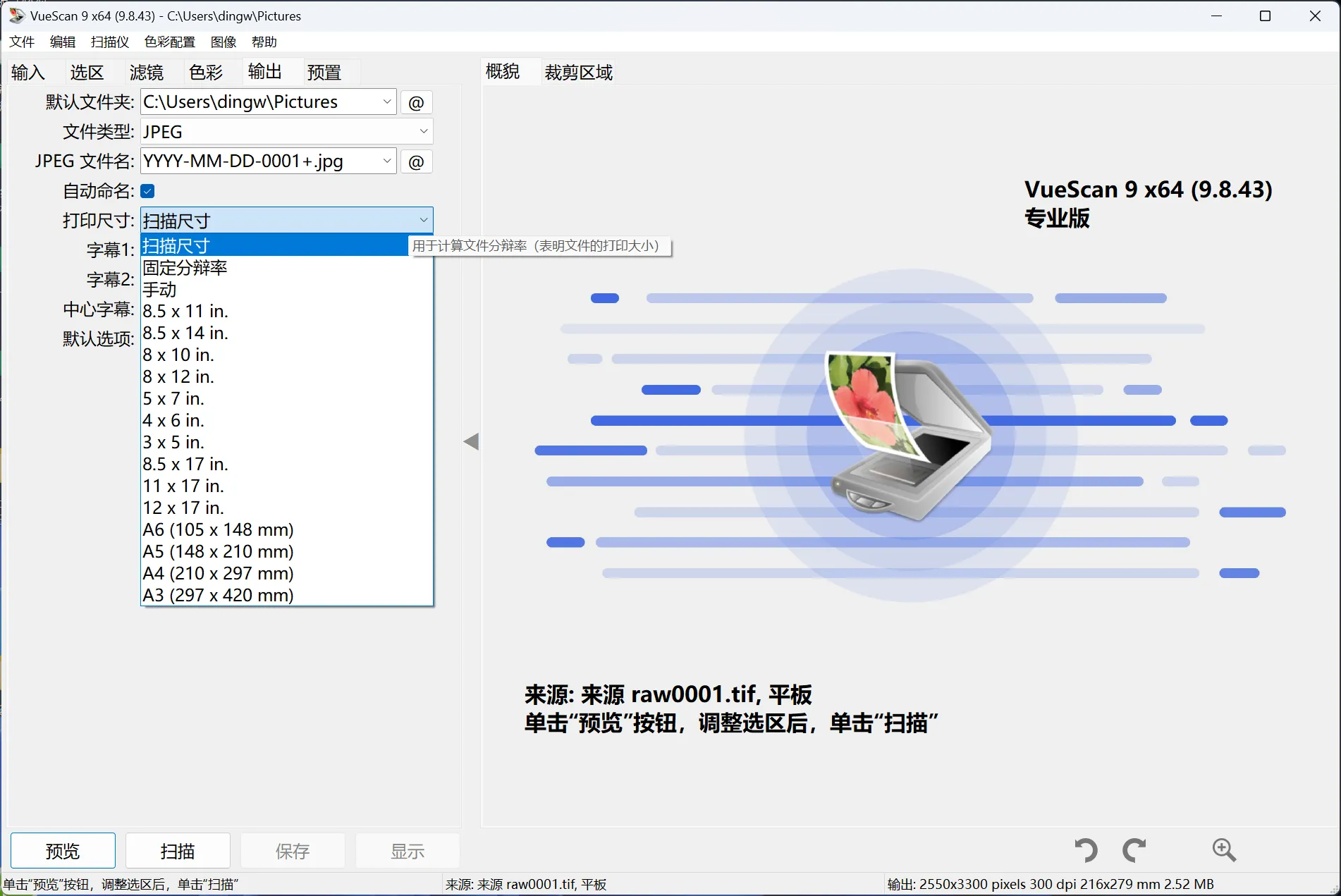 扫描到JPEG / TIFF / RAW