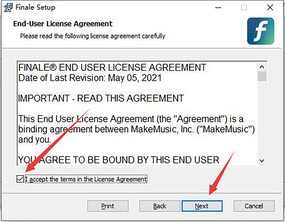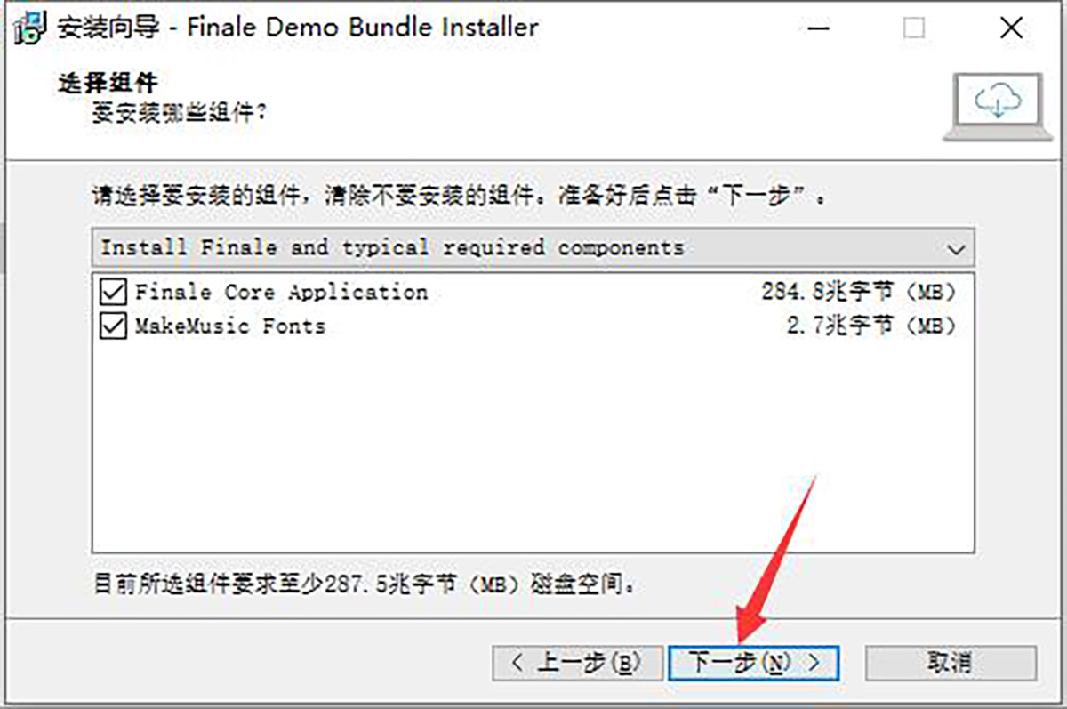 1.在脚本之家下载解压后,大家将获得Finale Setup with Fonts.exe和crack等文件,双击Finale Setup with Fonts.exe进入安装向导,如图
