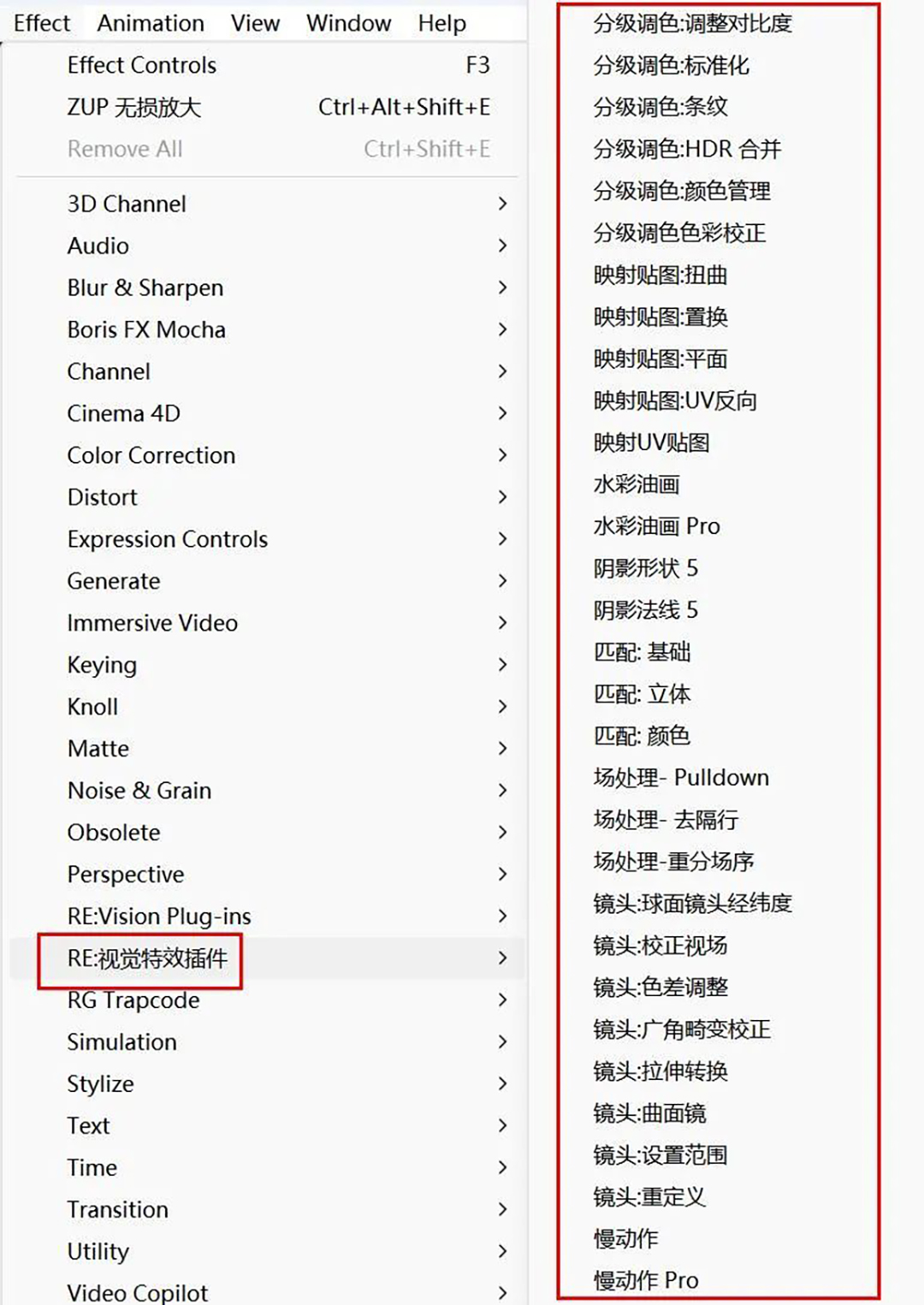 RE:Vision Effects 包含90多款插件, 均已完美汉化,这套插件也是AE常用必装插件