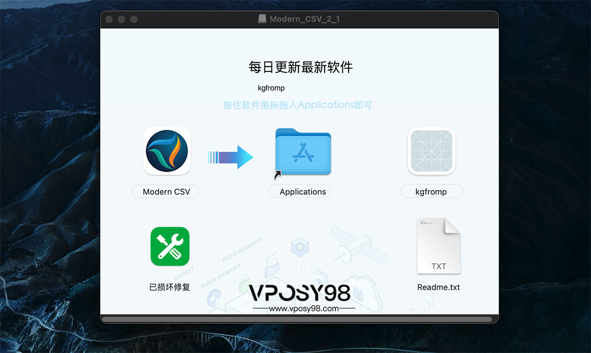 1.安装包下载完成后打开,拖动左侧的Modern CSV