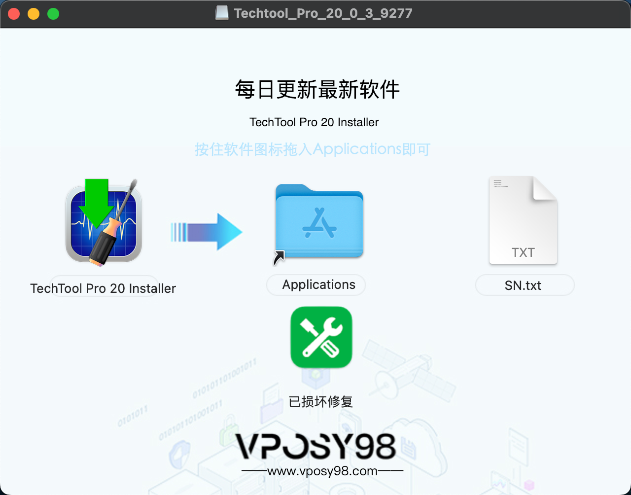 TechTool Pro mac破解版软件包下载完成后打开,双击进行安装