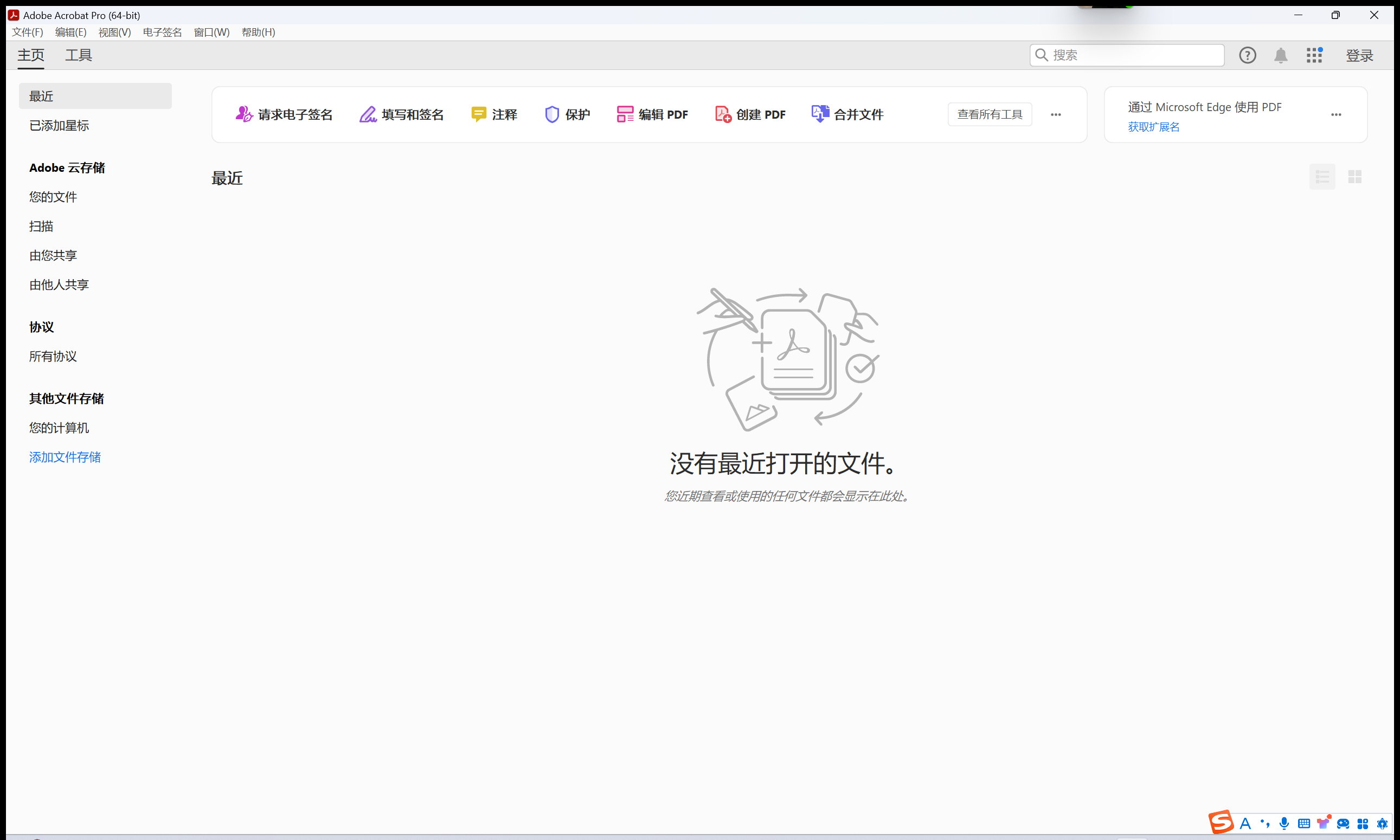 同樣,當您首次在Acrobat 中開啟簽名工具時,左側的「簽名」面板上會顯示一個資訊橫幅,鼓勵您使用請求電子簽名工具。