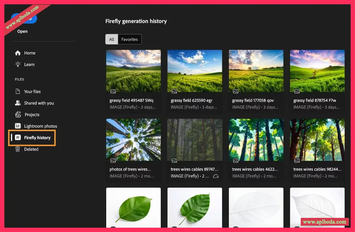 从 Photoshop 首页画面浏览您的 Adobe Firefly 生成历史记录。将任何 Firefly 中产生的影像开启为 Photoshop 文件,以使用完整的 Photoshop 编辑工具进行调整。 原始 Firefly 资产会维持不变,因此可安全创造变化版本。