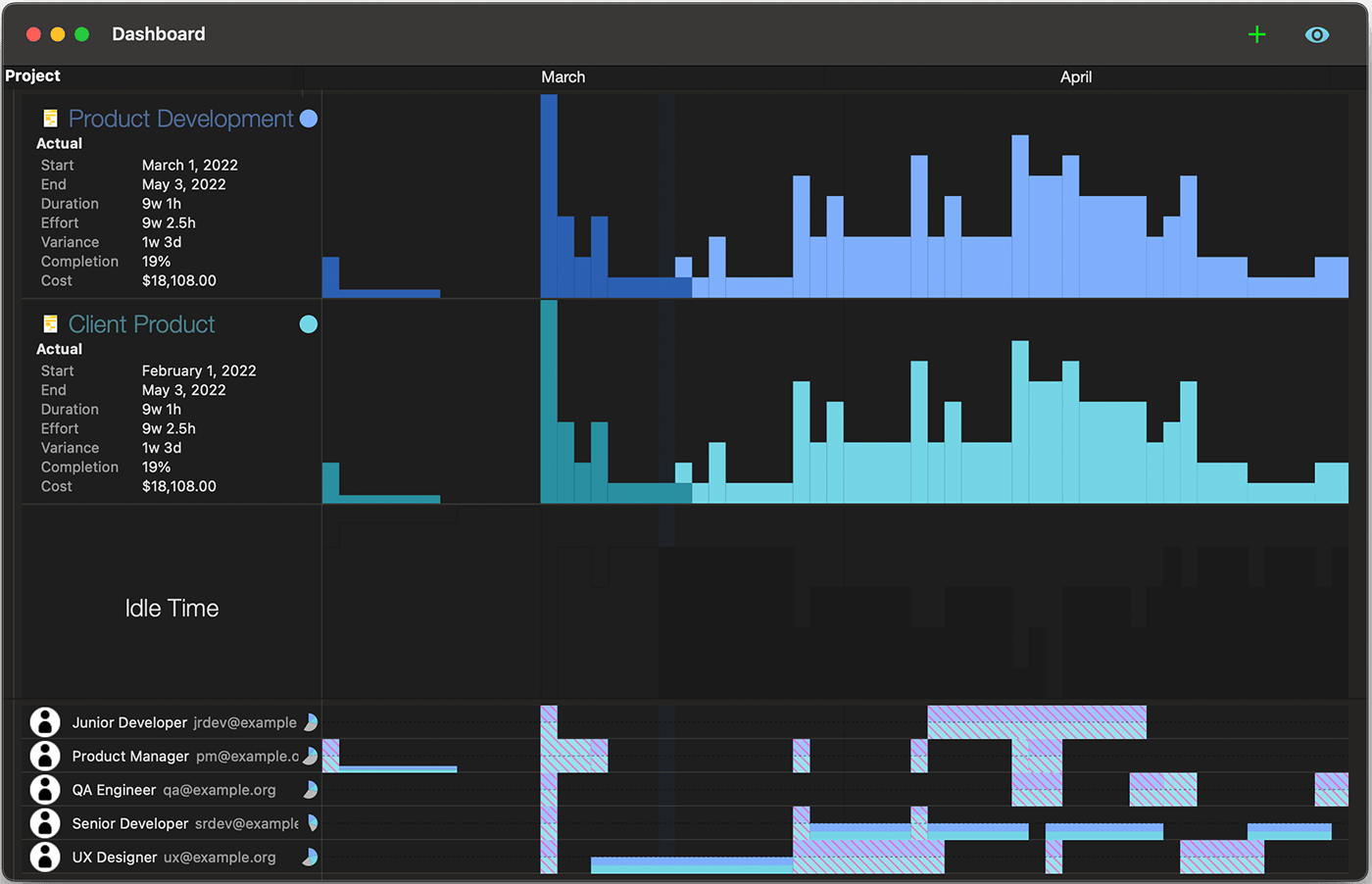 使用 OmniPlan 的内置挣值分析公式,通过设置基线和跟踪进度来掌握预算和价值。