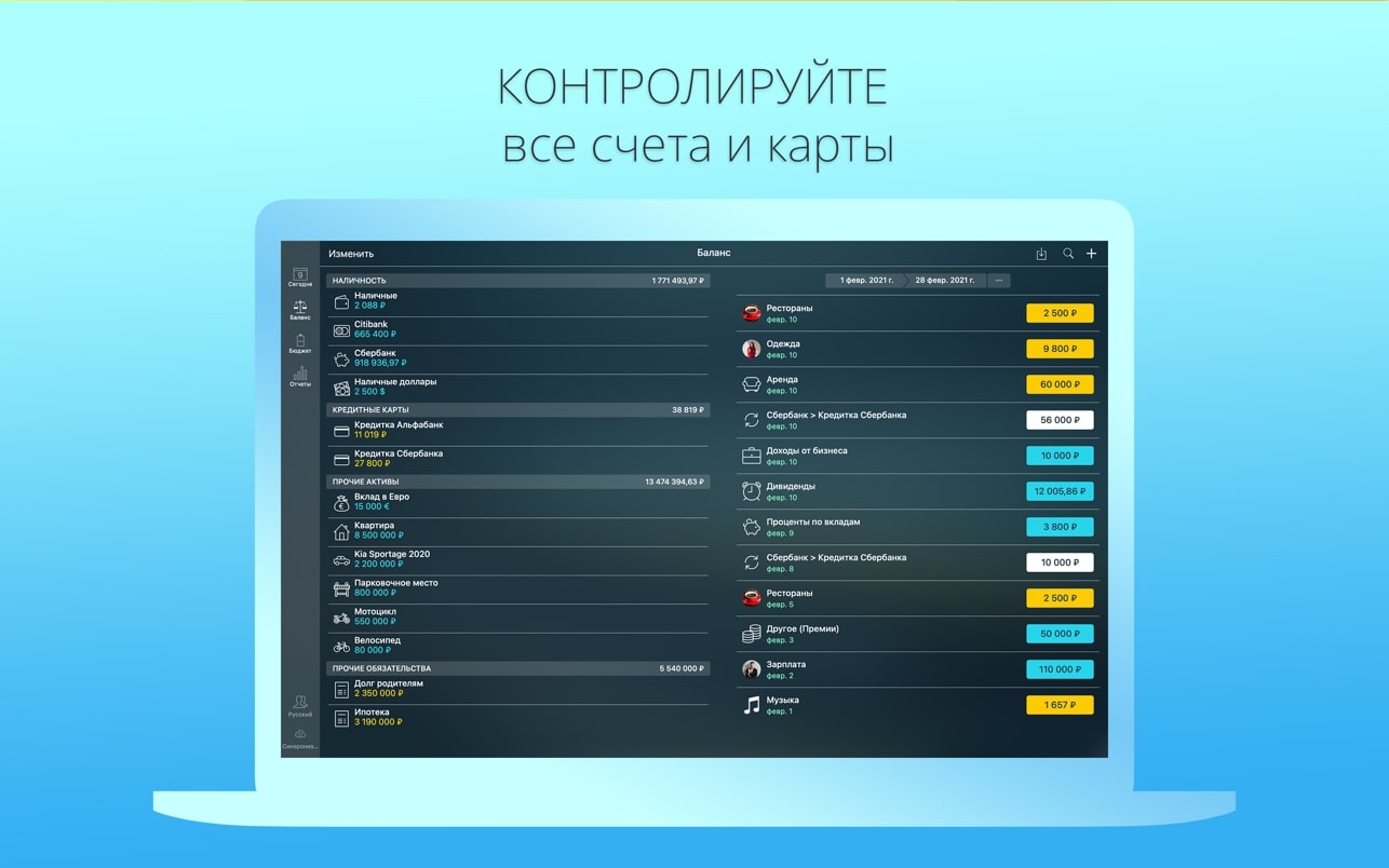 – 导入交易历史,使您的账户时刻保持最新状态(支持文件:.ofx)。
