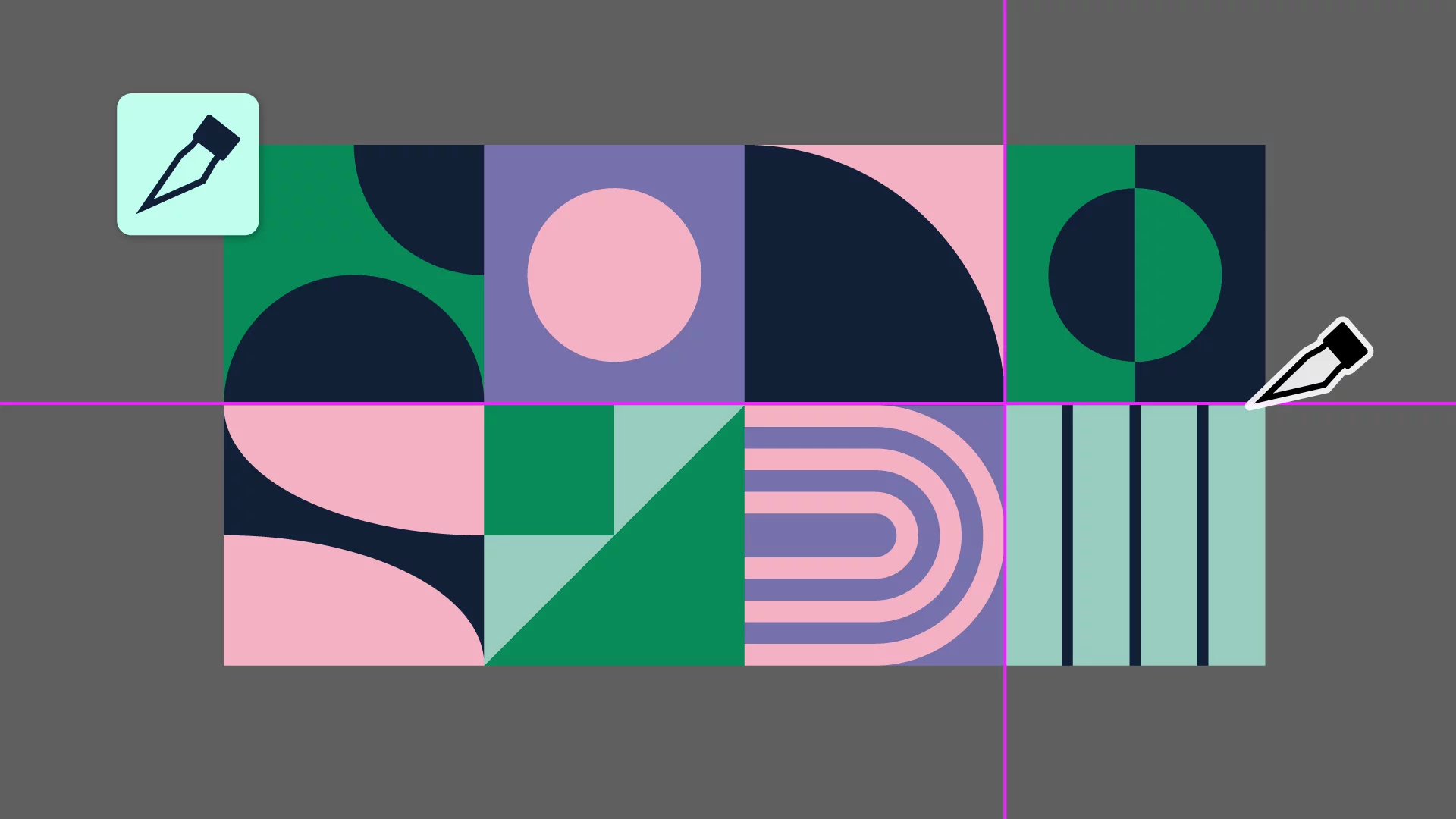 シンプルな図形や色を洗練されたロゴ、アイコン、グラフィックに変えるために必要な描画ツールがすべて揃っています。Illustrator のアートワークはベクターベースなので、モバイル画面に合わせて縮小したり、看板サイズに合わせて拡大したりしても、鮮明で鮮やかな仕上がりを保ちます。