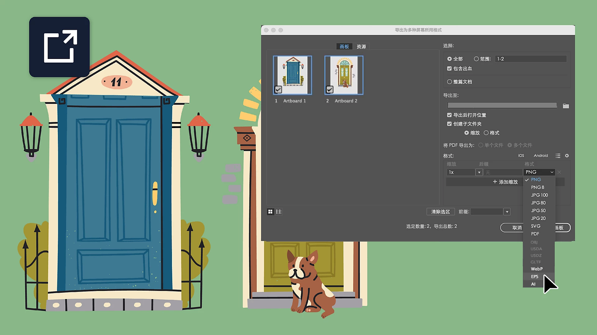 アートボードとアセットをAIおよびEPS形式で簡単にエクスポート