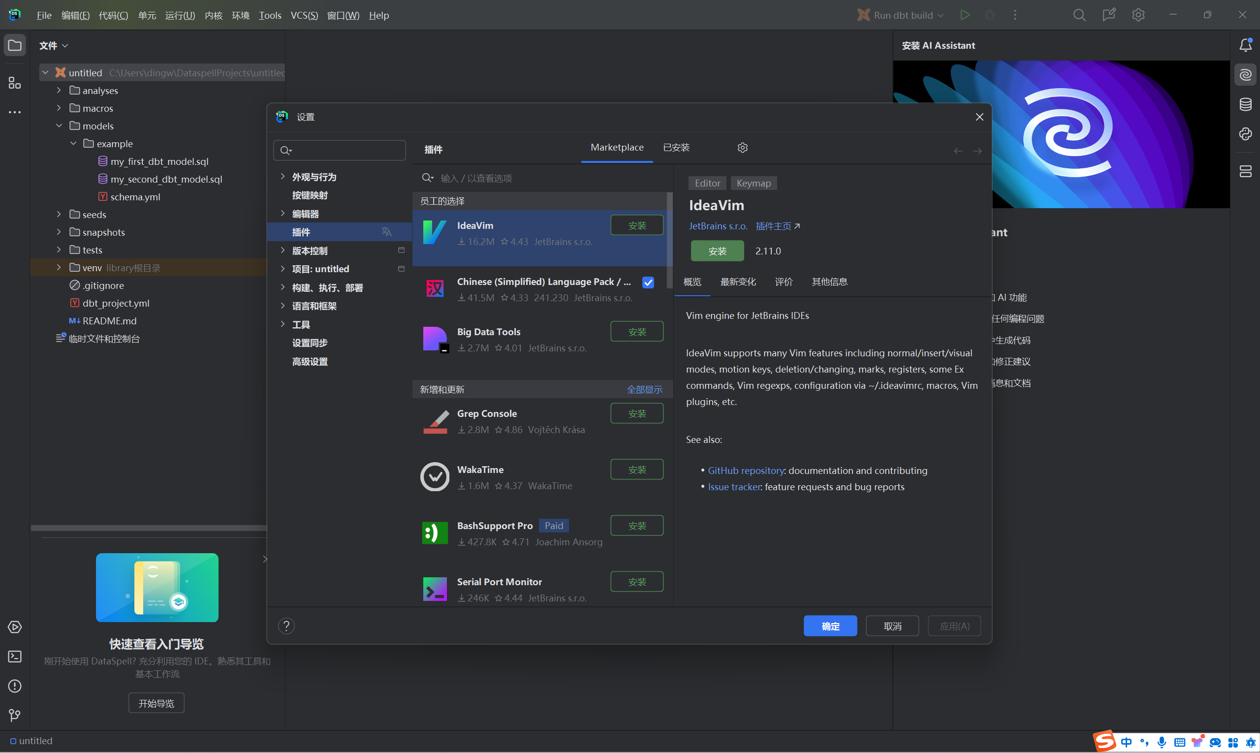 最新更新显著增强了 dbt Core 支持。 您现在可以直接在 DataSpell 中查看图表。 我们为 dbt Core 项目改进了代码补全,现在您可以直接从 SQL 文件轻松运行、预览和测试模型。