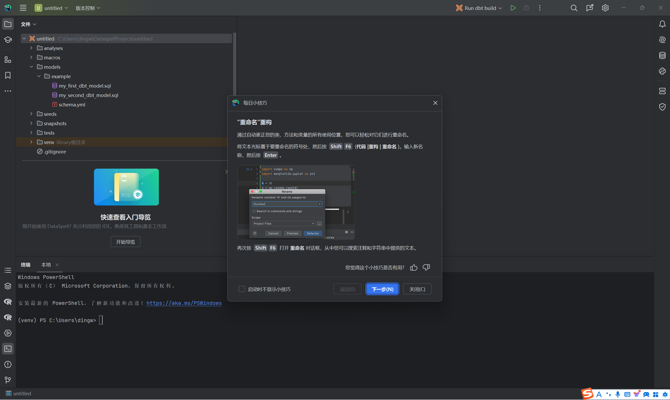 DAG 是面向分析工程师的强大工具,在此版本中,您可以直接在 DataSpell 中查看图。 导航也已简化,在 DAG 中点击节点即可。