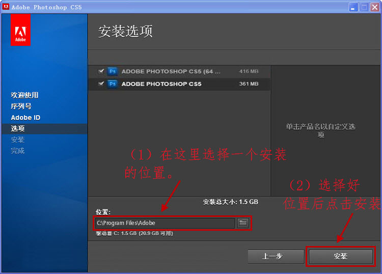 第六步:安装(安装选项,32位系统一个选项,64位系统可装两个版本)