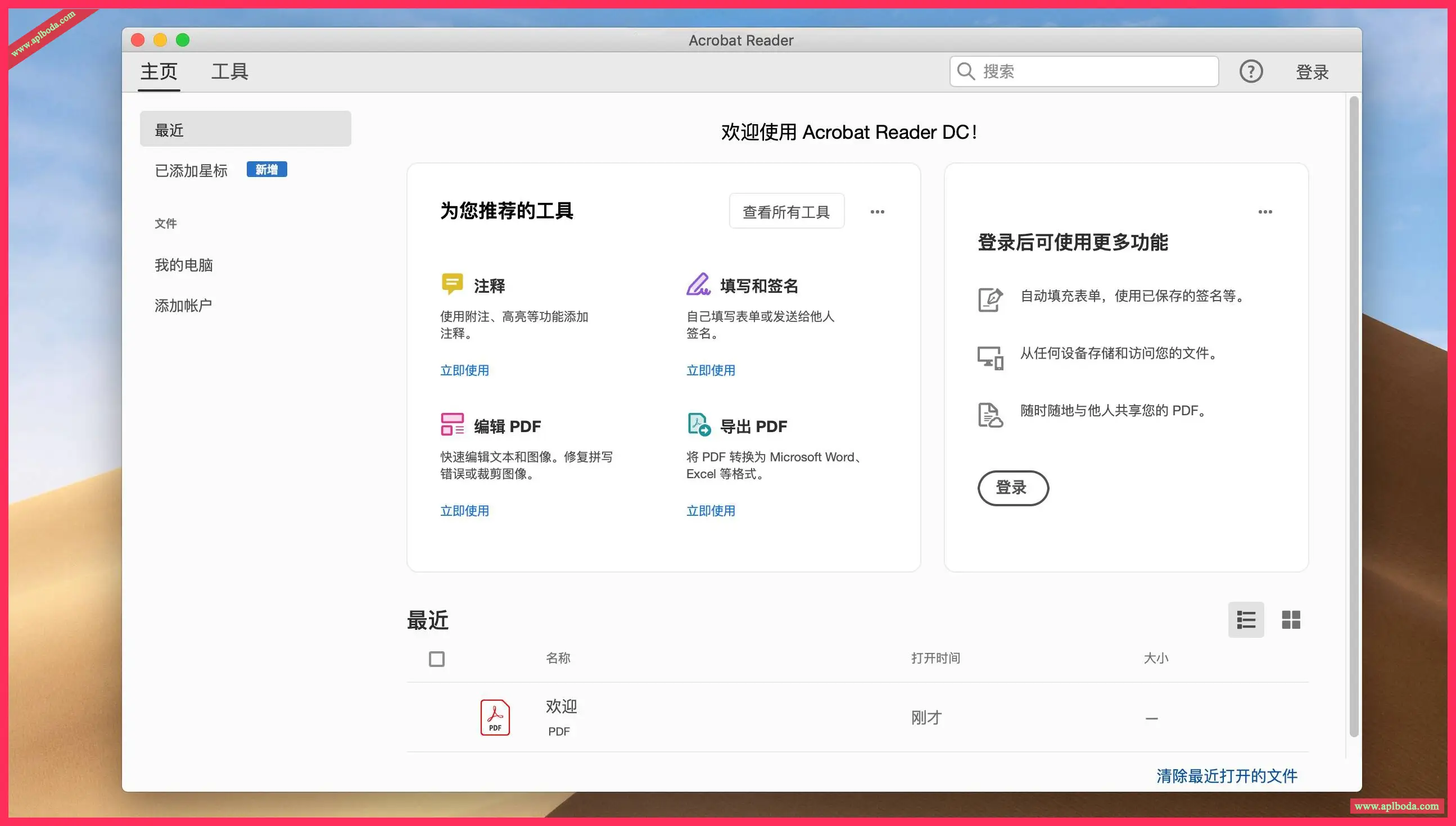 Adobe Acrobat Reader for mac是用于打开和使用在 Adobe Acrobat 中创建的 Adobe PDF 的工具。虽然无法在 Reader 中创建 PDF,但是可以使用Adobe Acrobat Reader 查看、打印和管理PDF。在 Reader 中打开 PDF 后,可以使用多种工具快速查找信息。测试环境:MacOS 14.2.1 M2芯片