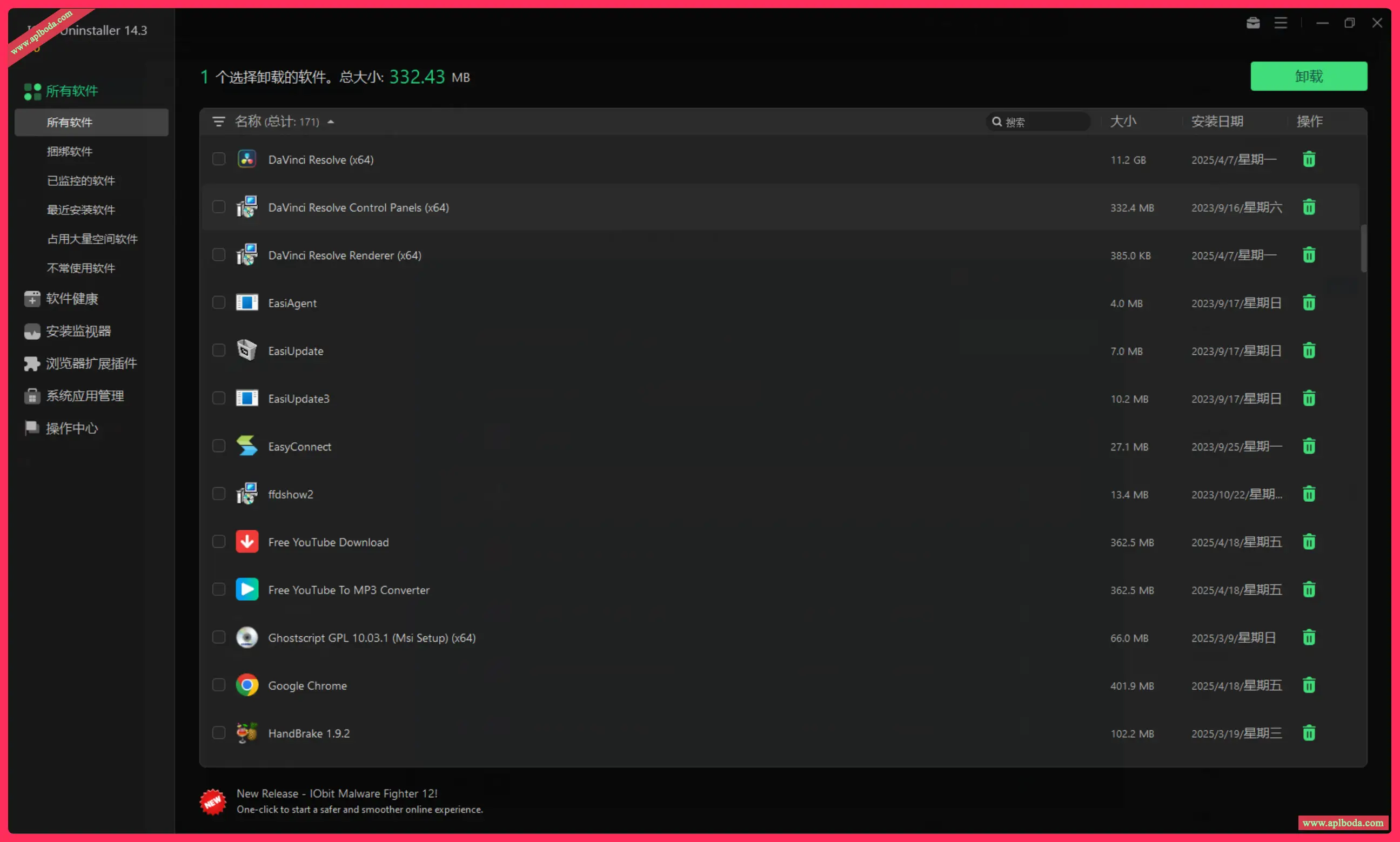 IObit Uninstaller Pro for Win是Windows上最好的軟體卸載程式之一,這要歸功於批量卸載功能,對大多數Windows版本的支援以及快速安裝本身。